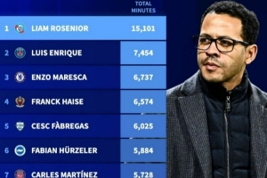 体育资讯1月6日讯 前斯特拉斯堡主帅罗塞尼尔正式加盟切尔西,德转也盘点了自罗塞尼尔出任斯特拉斯堡主帅以来,五大联赛球队主帅使用U21球员总时间,罗塞尼尔大幅领跑。具体如下: