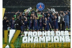 体育资讯1月9日讯 法国超级杯比赛,巴黎圣日耳曼2-2战平马赛,最终在点球大战中取胜,捧起冠军奖杯。