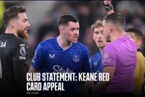 官方:埃弗顿上诉被英足总驳回,基恩因红牌将停赛3场