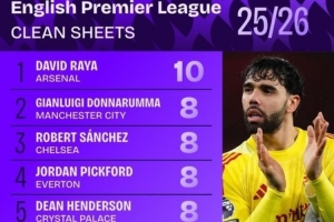 本赛季英超零封榜: