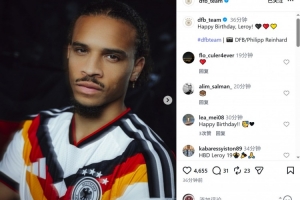 德国队官方社媒晒出萨内的照片,配文:“生日快乐,勒鲁瓦!”