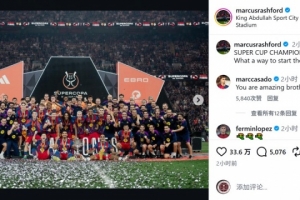 这是拉什福德加盟巴萨以来赢得的首个冠军,他在社交媒体上晒出全队与奖杯的合照,配文:“西超杯冠军!多么完美的新年开局!”