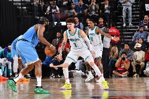 黄蜂首发:拉梅洛·鲍尔、克尼佩尔、布兰登·米勒、迈尔斯·布里奇斯、穆萨·迪亚巴特