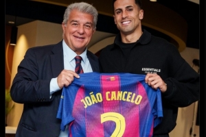 巴萨官方发布了坎塞洛和主席拉波尔塔一起手持巴萨球衣的合照,号码正是2号,并配文:“一日红蓝,终生红蓝”。