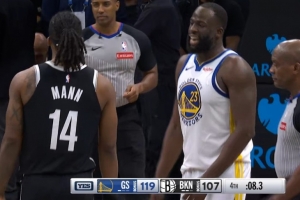 GIF-理查德本来不打了,追梦让他投一个,曼恩听到了,过去扑防送了理查德2+1!