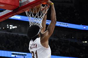 本场比赛,骑士内线阿伦表现出色,面对文班亚马丝毫不落下风,在28分钟的时间里,投篮21中11,三分球1中0,罚球7中5,拿下27分10篮板2抢断的数据,正负值+9。