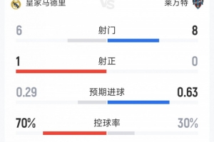 下一篇: 半场-皇马仅1射正0-0莱万特 姆巴佩造险皇马射门6-8落后