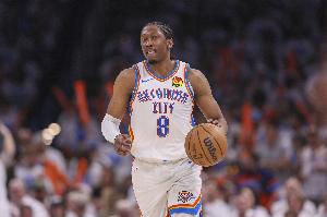 雷霆二当家杰伦·威廉姆斯上半场表现全面,进攻端手感也不错,不过他在第二节一次突破中受伤离场。