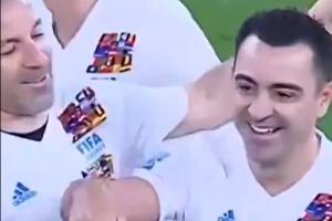 比赛中,托蒂与哈维两人连线,最终哈维轻巧挑射破门。