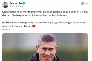 体育资讯12月30日讯 据记者雅各布斯(Ben Jacobs)报道,尼克·蒙哥马利将出任北京国安主帅,预计正式协议在48小时内签署。