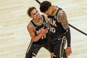 GIF-科林斯和特雷·杨拥抱