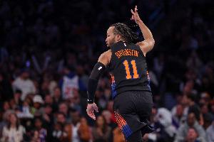 此役,尼克斯球星布伦森出战35分31秒,投篮23中10,三分10中5,罚球3中3,得到28分3篮板10助攻。