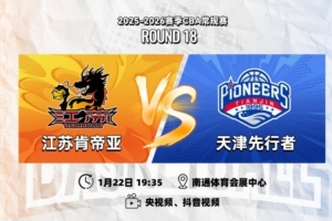 1月22日19:35,2025-26赛季CBA常规赛第十八轮,江苏肯帝亚将坐镇主场南通体育会展中心篮球馆迎来与天津先行者的二番战。