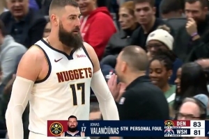 GIF-瓦兰丘纳斯跳球搂人被吹犯规,个人第5犯被换下