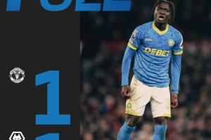 体育资讯12月31日讯 英超第19轮,狼队1-1战平曼联,从老特拉福德拿到1分。