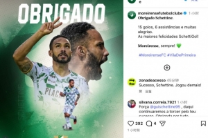 莫雷拉人晒出了吉列尔梅的海报,并配文写道:“谢谢你,吉列尔梅,效力球队期间你共打进15球,助攻6次。愿你一切顺利!”