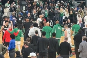 GIF-朱·霍勒迪和凯尔特人全队拥抱致意