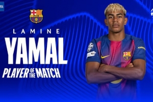 体育资讯1月29日讯 欧冠联赛阶段第8轮,巴萨4-1逆转哥本哈根。亚马尔首发出战,赛后传射建功的他被评为全场最佳球员。