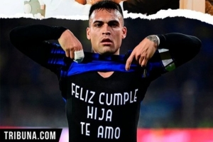 取得进球后,劳塔罗进行了激情庆祝并掀起球衣将进球献给过5岁生日的女儿妮娜。