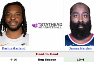 据统计,哈登生涯面对加兰10胜4负,场均24.1分5.4篮板9.6助攻1.3抢断,加兰场均19.8分3.5篮板7.5助攻1.6抢断。