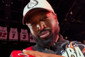 韦德在活动结束后晒出了一张在球场中央的自拍,而背景可以看到当年一起夺冠的奥尼尔、哈斯勒姆退役球衣,以及后来的队友波什的退役球衣。