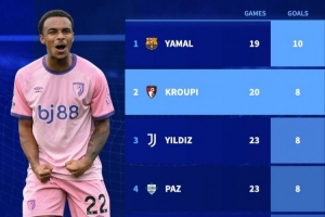 克鲁皮(伯恩茅斯),20场,8球