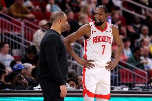 赛后乌度卡接受了采访,谈到申京和KD失误较多的问题,他说:“就是在人堆里打得太多了。任何时候你进入禁区,无论是大个子还是小个子突破、背身单打,对方都会过来包夹。然后你一转身就(可能丢球)…凯文(杜兰特)大概有三次失误是在这种情况下,阿尔佩伦(申京)也是。所以就像我说的,要知道包夹从哪里来,要知道只要你进禁区他们就会来,然后找到我们的出球点。所以这些失误是我们的责任,我认为空间拉开得够好了,克里斯·邓恩就像个自由安全卫在后面伺机而动,他们上半场就有四次抢断。所以我们必须在这方面做得更好。”
