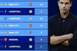 22/23赛季,阿森纳领先曼城5分