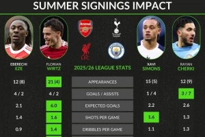 体育资讯2月14日讯 whoscored对比了英超四大豪门在去年夏天的攻击型中场引援,维尔茨和谢尔基表现更好。