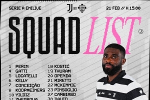 体育资讯2月21日讯 北京时间今天晚上22点,尤文将在意甲第26轮比赛中主场对阵科莫,尤文公布了此役的球员名单。布雷默、霍尔姆因伤缺席,卡卢卢停赛缺席,戴维回归。