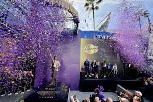 体育资讯2月23日讯 今日湖人为球队传奇主教练帕特·莱利举行雕像揭幕仪式。