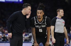 体育资讯2月24日讯 马刺114-103力克活塞,取得9连胜。赛后,马刺主帅米奇·约翰逊接受媒体采访。