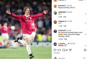 今日是索尔斯克亚53岁生日!曼联社媒送上祝福:生日快乐