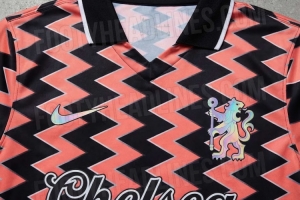 另一个突出的细节在于广告赞助商区域,传统的赞助商标志被替换为手写体风格、“切尔西”字样的单词,经典的流畅笔触进一步强化了球衣的复古身份。