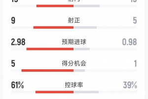 控球率:61%-39%