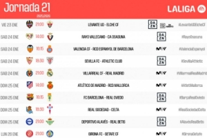 体育资讯1月6日讯 本周一,西班牙足协公布了西甲第21轮比赛的开球时间,其中皇马客场对阵比利亚雷亚尔的焦点战将在北京时间(以下都是北京时间)1月25日04:00进行。