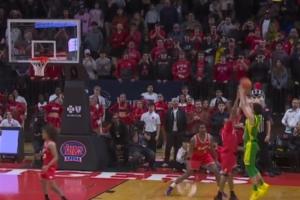 距离第四节结束还剩8秒时,俄勒冈依然落后3分,边线发球后,林葳拿球无视对手防守,强行干拔命中绝平三分!