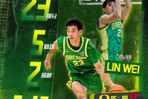 此役,中国球员、俄勒冈大学后卫林葳继续首发出战,他状态上佳,全场上阵33分钟14投8中,三分12中6、罚球2中1,砍下23分1篮板5助攻2抢断,多项数据创个人NCAA生涯新高。